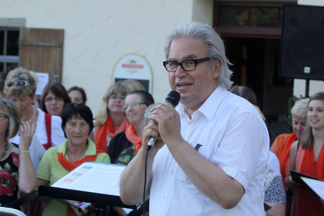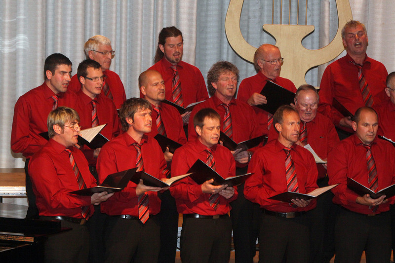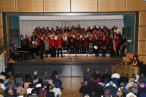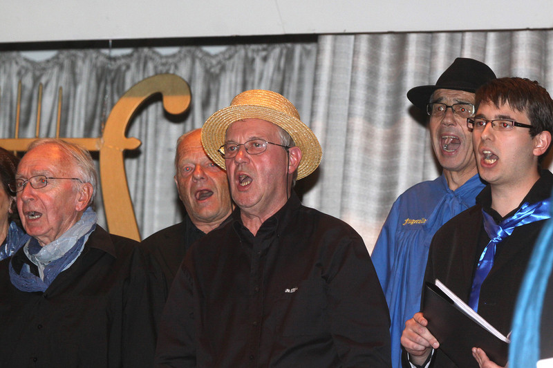 Die 3 Patenchöre sowie der Gastchor „La Petite Fugue“ aus Luxeuil-les-Bains unterstützten temperamentvoll den Liederkranz, der den Abend dem Sänger, Komponisten und Entertainer Udo Jürgens widmete.