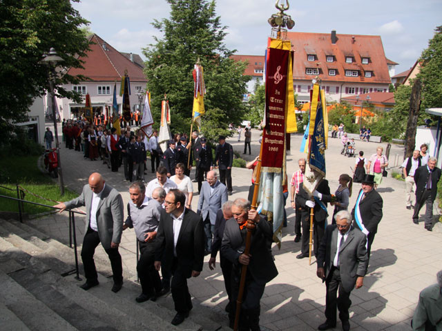 Im gemeinsamen langen Festzug, angeführt durch die Musikkapelle Bad Wurzach, durch die Innenstadt zur St. Verena-Kirche, nahmen alle Wurzacher Vereine und die 3 Patenchöre aus