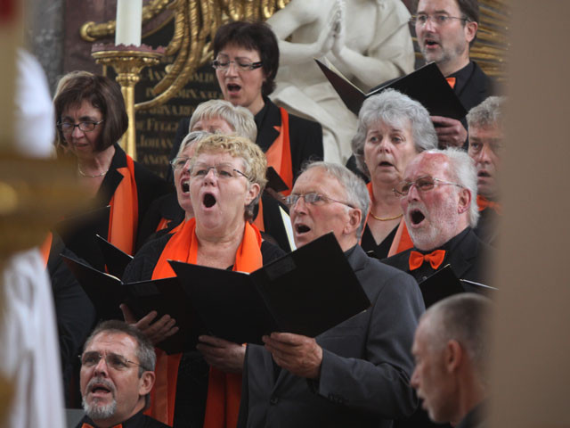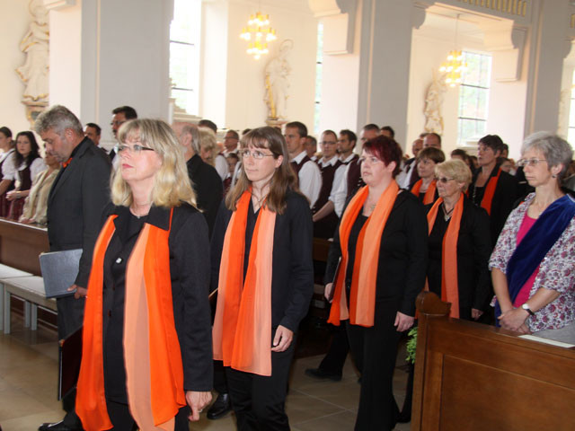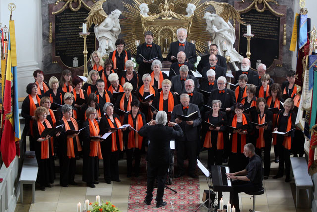 Der Liederkranz hatte für diesen Festgottesdienst die Messe brève No. 7 mit dem Untertitel „aux chapelles“ von Charles François Gounod (1818-1893) einstudiert. Dirigent Jochen Hillebrand und dem Liederkranz mit solistischen Einsätzen von Richard Mandery (Bass) und Michael Ocker (Tenor/Bariton) gelangen eine glaubwürdige und gelungene Umsetzung dieses geistlichen Werks von Gounod unter Begleitung von Robert Häusle an Klavier und Orgel.